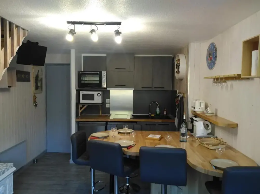 La decorazione con l'originalità del lavoro in legno in tutto l'appartamento, l'equipaggiamento da cucina e il piccolo extra: libri e giochi disponibili.